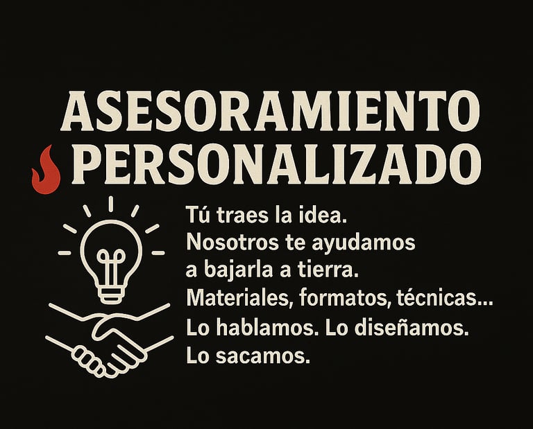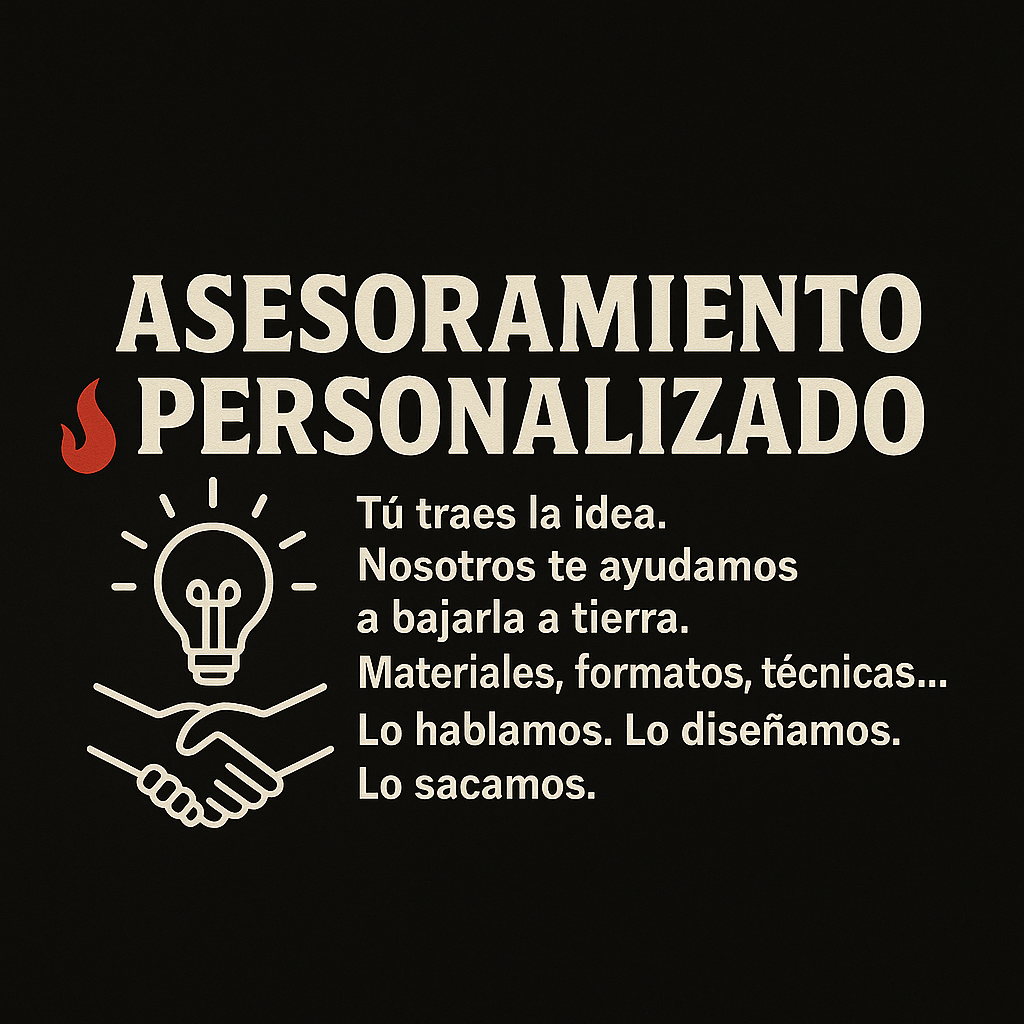 Desde la prenda en blanco hasta el diseño final, trabajamos contigo para crear piezas que representen lo que eres, lo que haces o lo que quieres contar. Aquí no hay paquetes cerrados ni respuestas estándar: cada proyecto se trata como único.